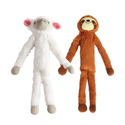 Wat deze twee zo leuk maakt, zijn hun lange, slungelige armen en benen. Perfect om mee te schudden tijdens een speelse bui, maar ook om lekker in je bek rond te sjouwen. Het zachte pluche materiaal voelt heerlijk aan, waardoor de luiaard en het schaap ook uitstekend geschikt zijn als rustgevend knuffelvriendje. Niet zo raar dus dat veel honden deze twee overal mee naartoe nemen.