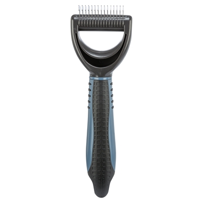 Vacht die verward raakt, kleine klitten die zich nestelen in de onderwol: het hoort erbij als je een hond hebt met langer of dikker haar. Maar die klitten kunnen ongemakkelijk zijn en als je ze laat zitten, worden ze alleen maar erger. Deze vachtontvilter kam van Trixie helpt je om die verviltingen op een vriendelijke manier aan te pakken, zonder te trekken of te sjorren.